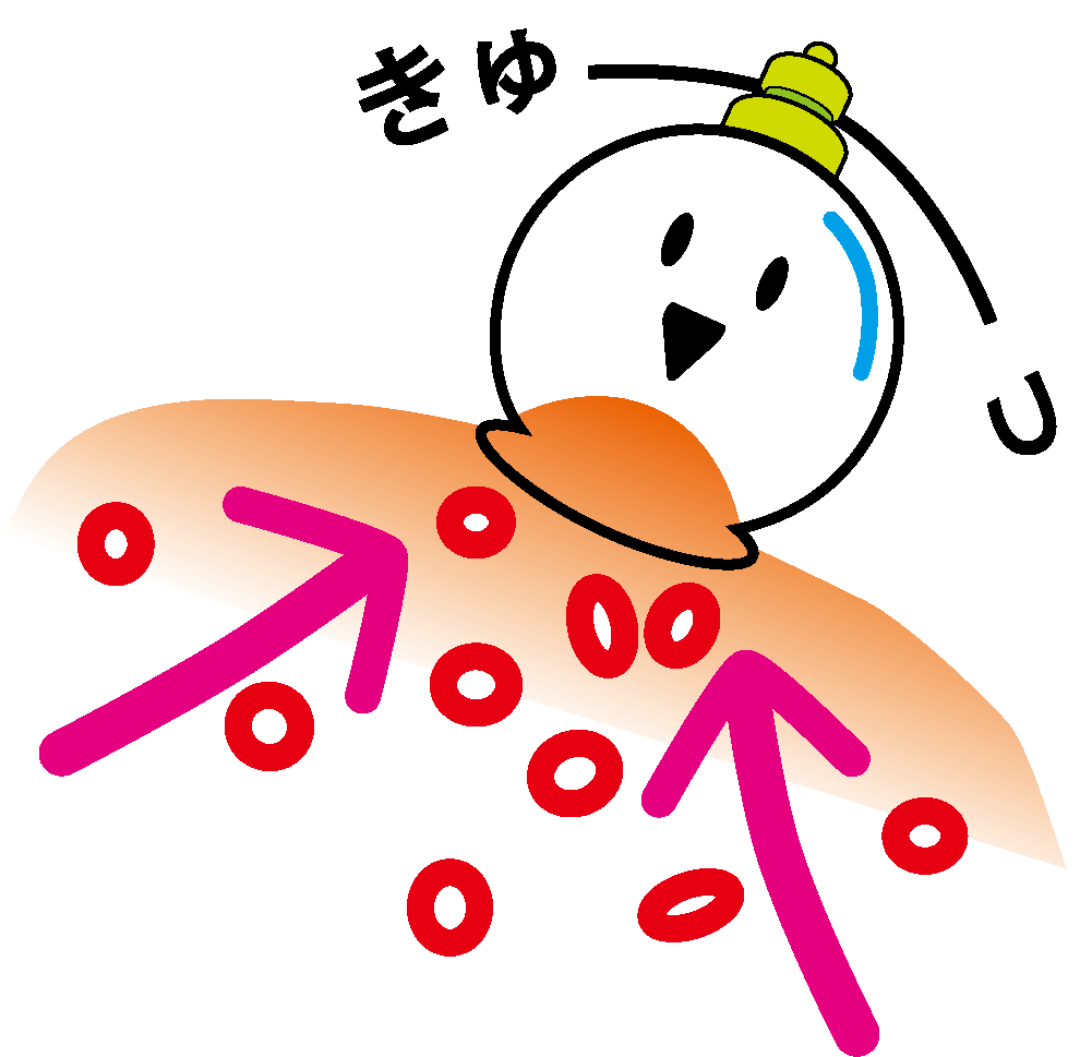 皮膚から (皮膚塗布)   真皮に到達し、血管→全身     塗布部位部位への作用
